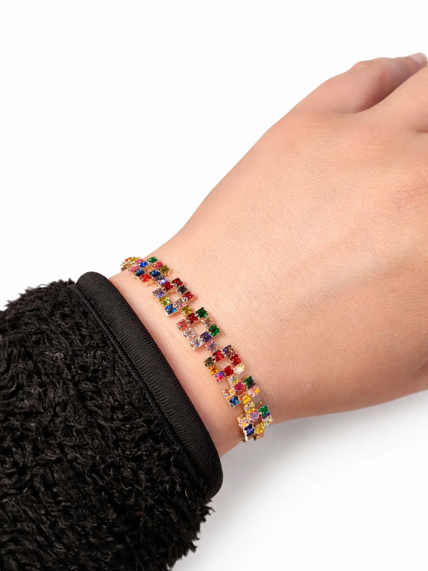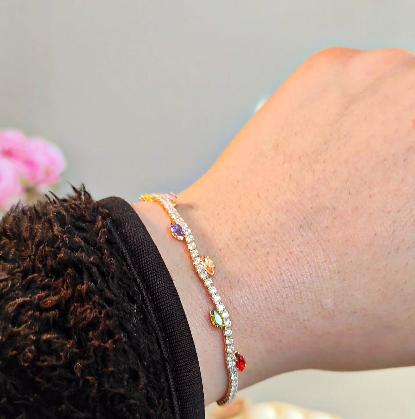 Multi-Color Stone Gold Plated Bangle | Adjustable
