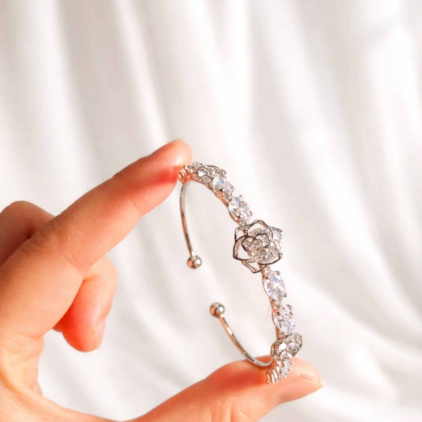 Bloom Rose Silver Plated Cuff Bangle