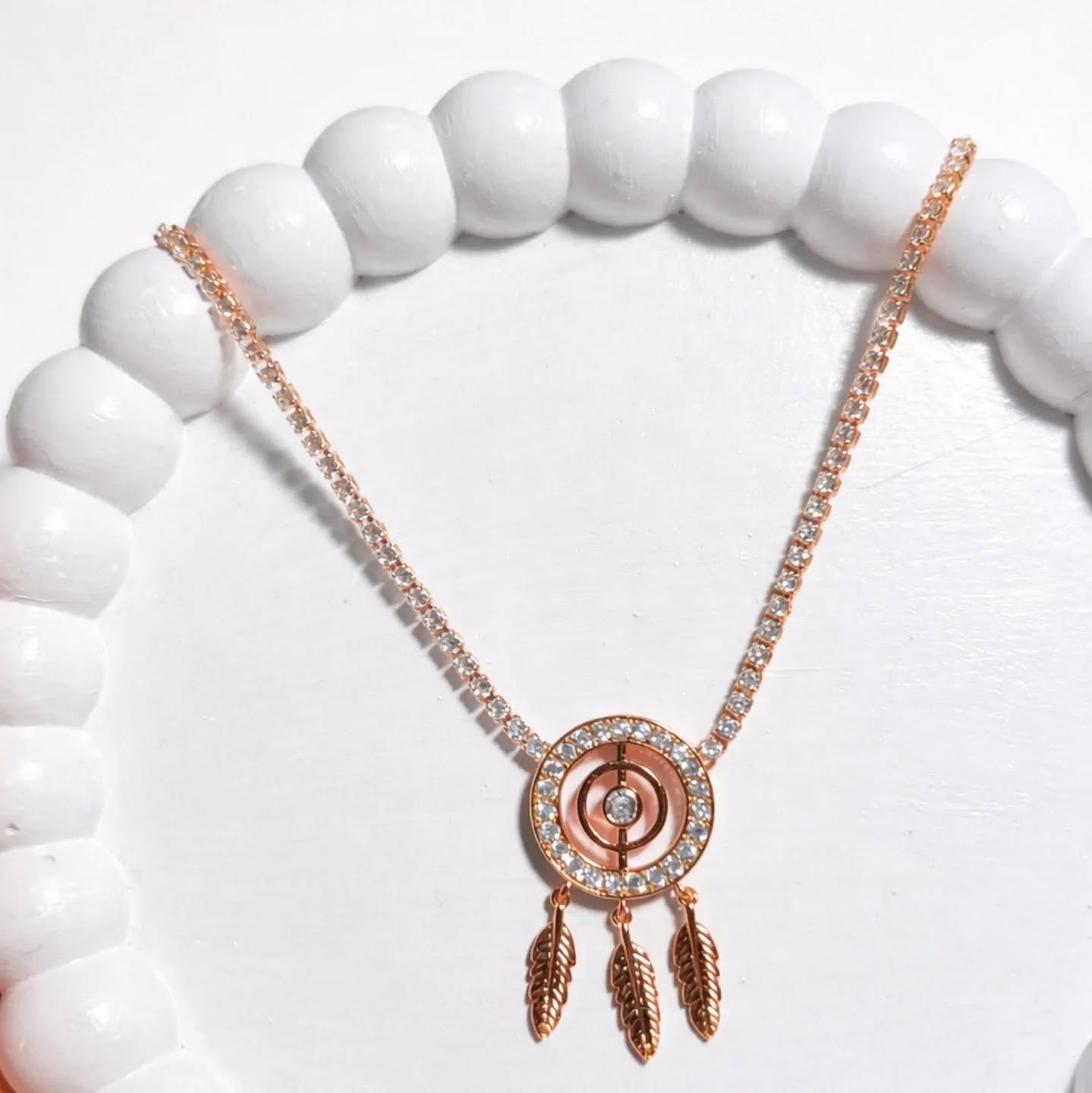 Adjustable Gold Plated Dreamcatcher Necklace with Feather Dangles (CZ)