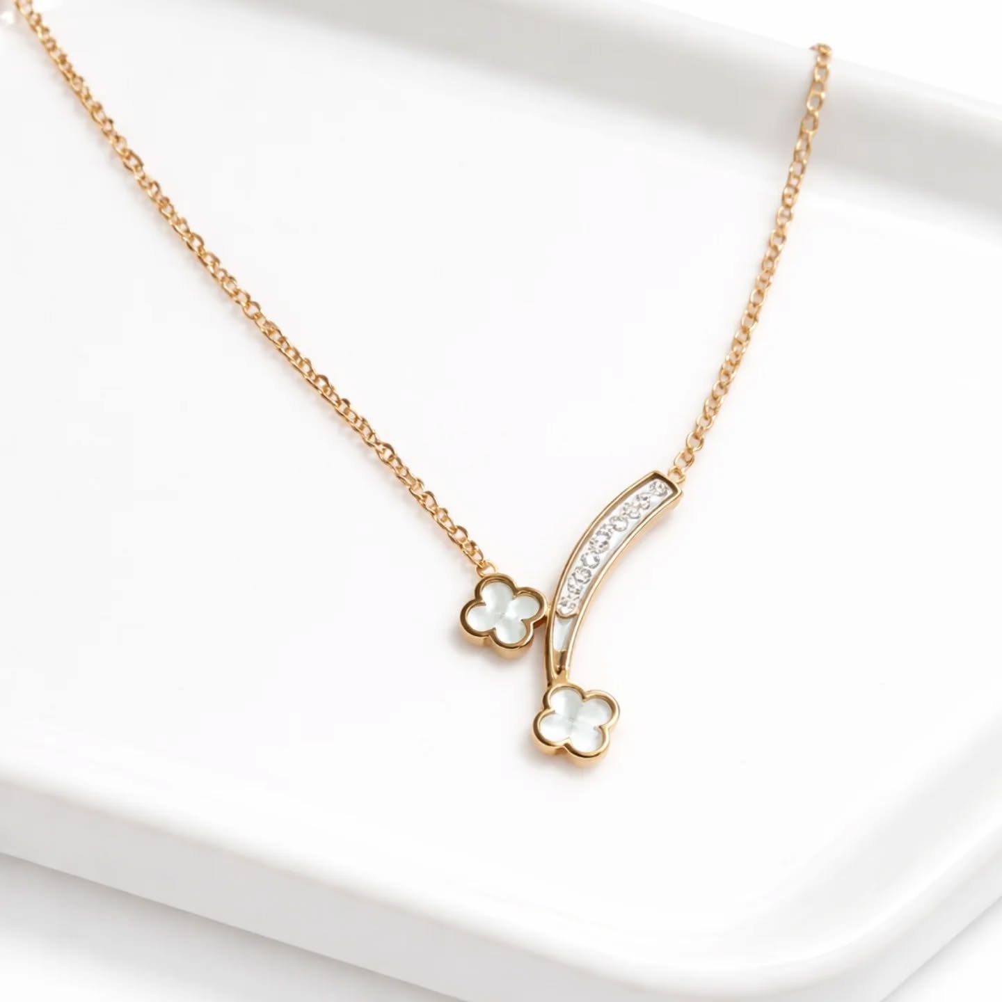 Gold Plated Clover Y-Necklace with Mother-of-Pearl & CZ