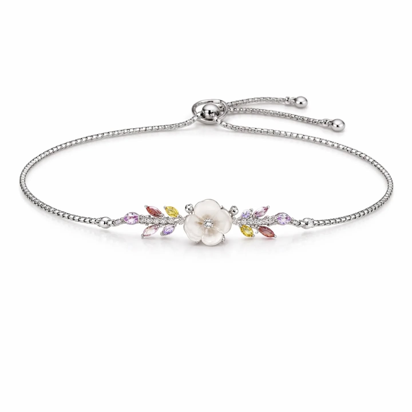 Adjustable Gold Plated Multicolored Flower Tennis Necklace