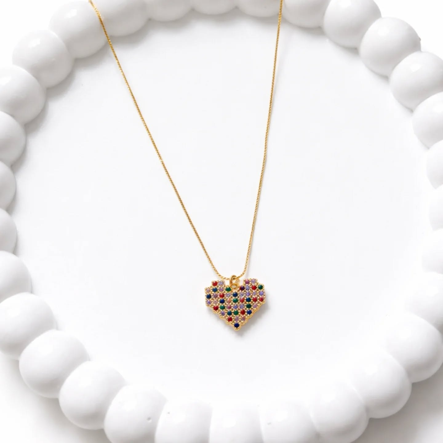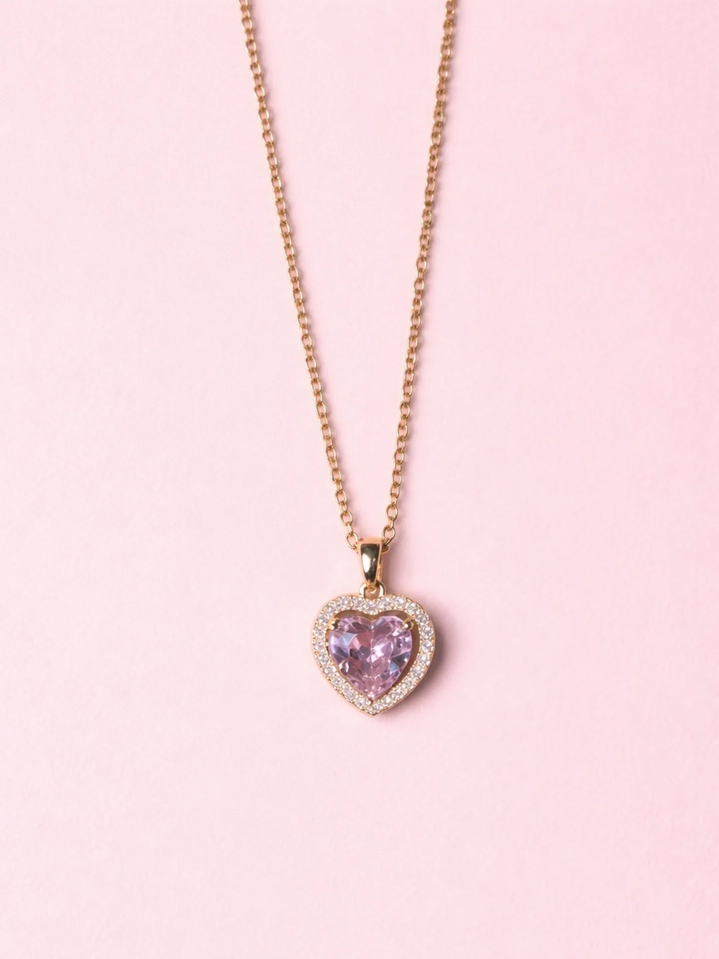 Heart CZ Halo Gold Plated Pendant Necklace