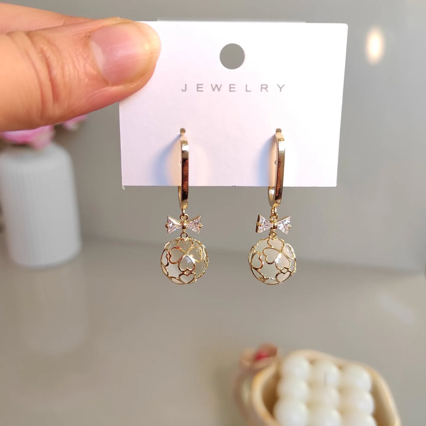 Beaded Pearl Bow Stud Earrings | Gold and Pearl Ribbon