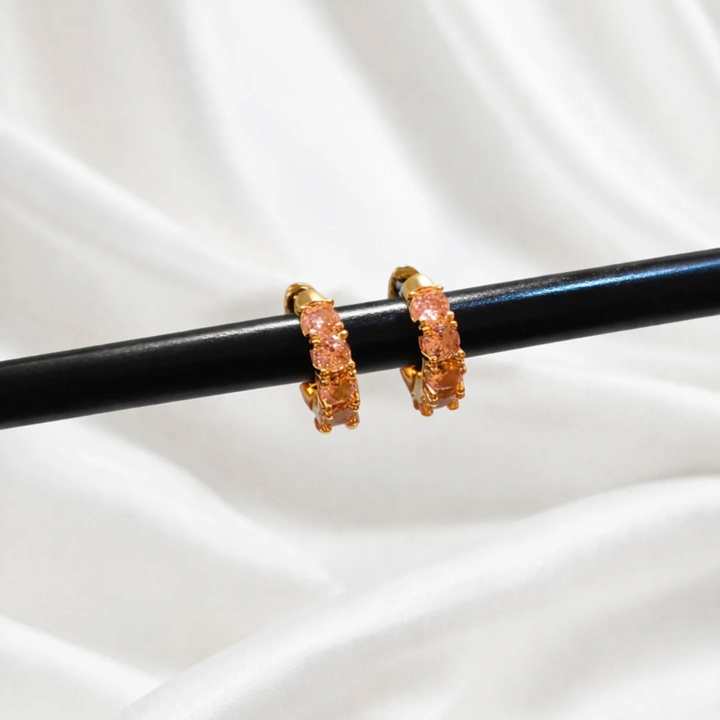 Gold Plated Pink CZ Huggie Hoop Earrings