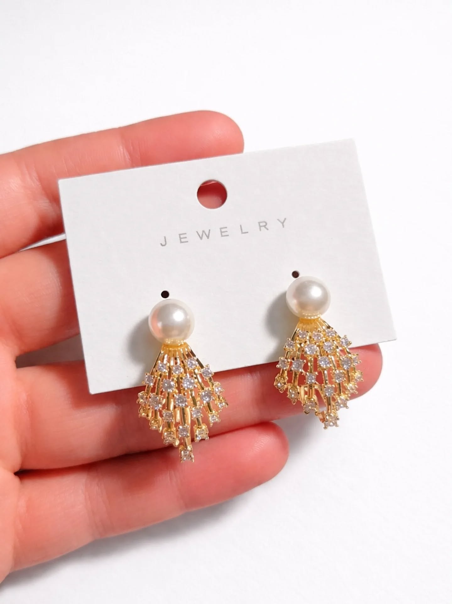 Pearl and Gold Cascade Chain Earrings | Long Tassel Drop