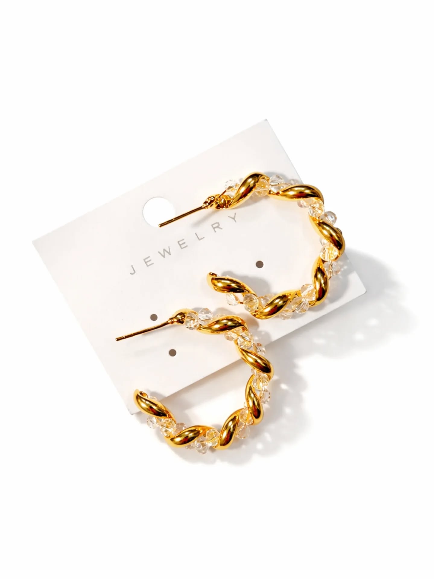 Gold Plated Twisted Hoop Earrings with Clear Crystal Accents