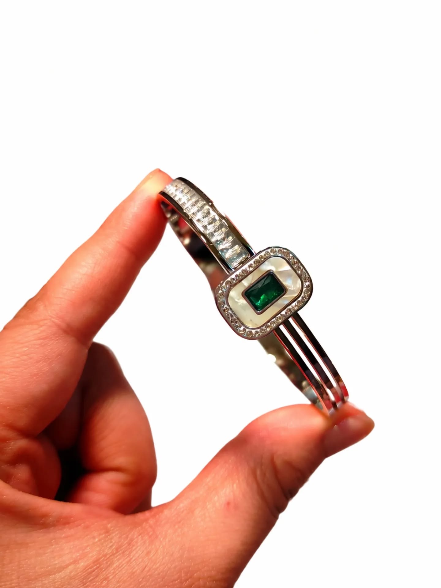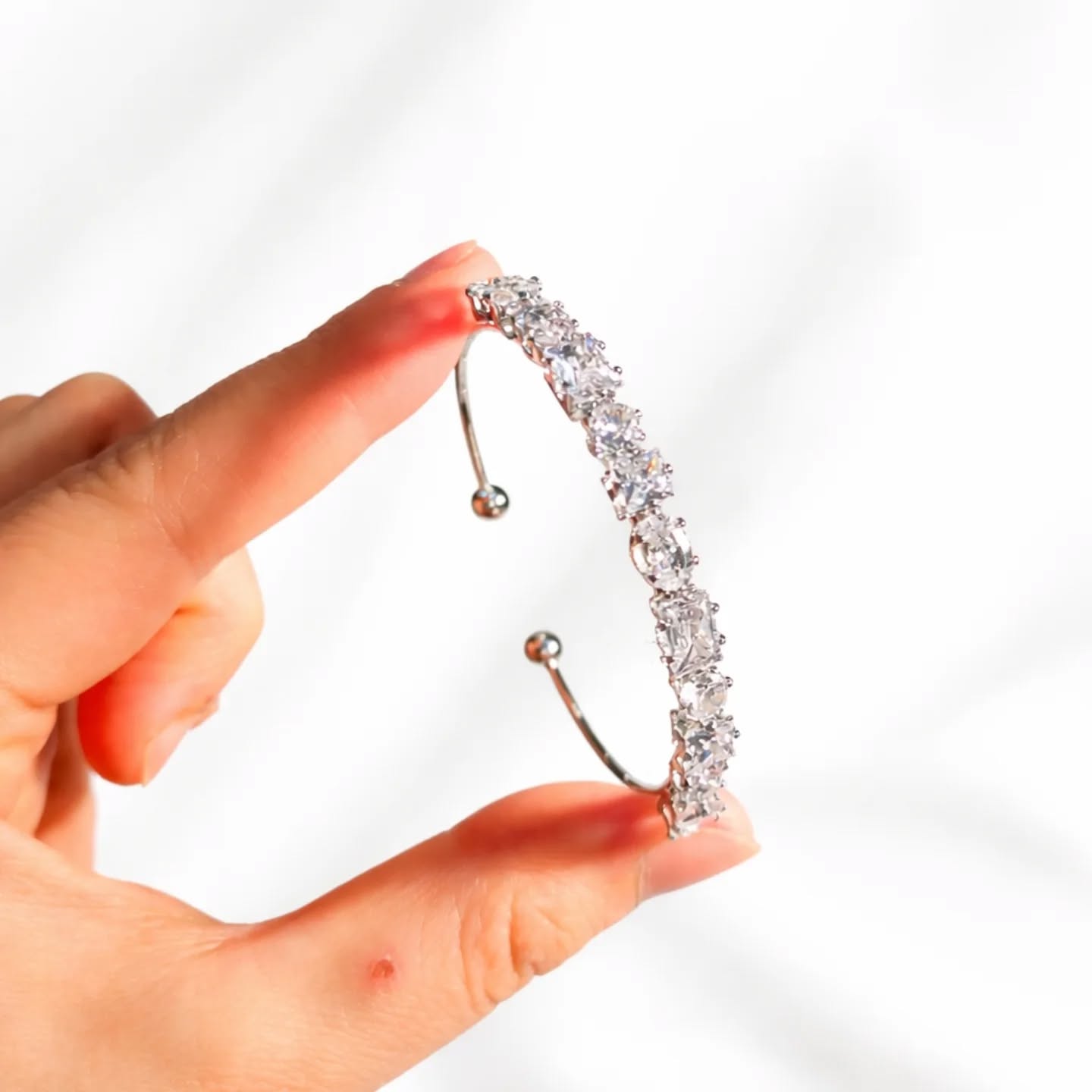 Mixed-Cut CZ Stone Silver Bangle | Adjustable
