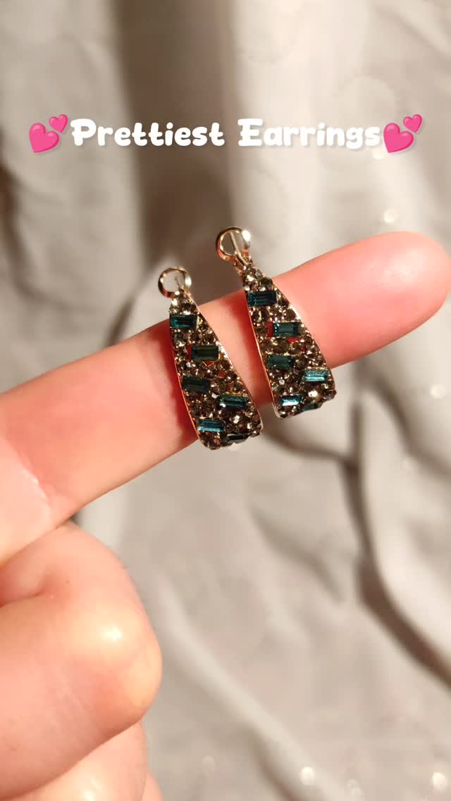 Double Heart Dangle Earrings | Green and Clear Gemstone