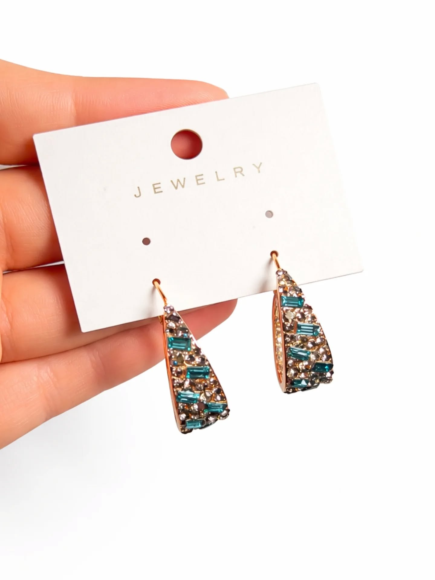 Blue and Champagne Crystal Hoop Earrings | Gold Baguette Pave