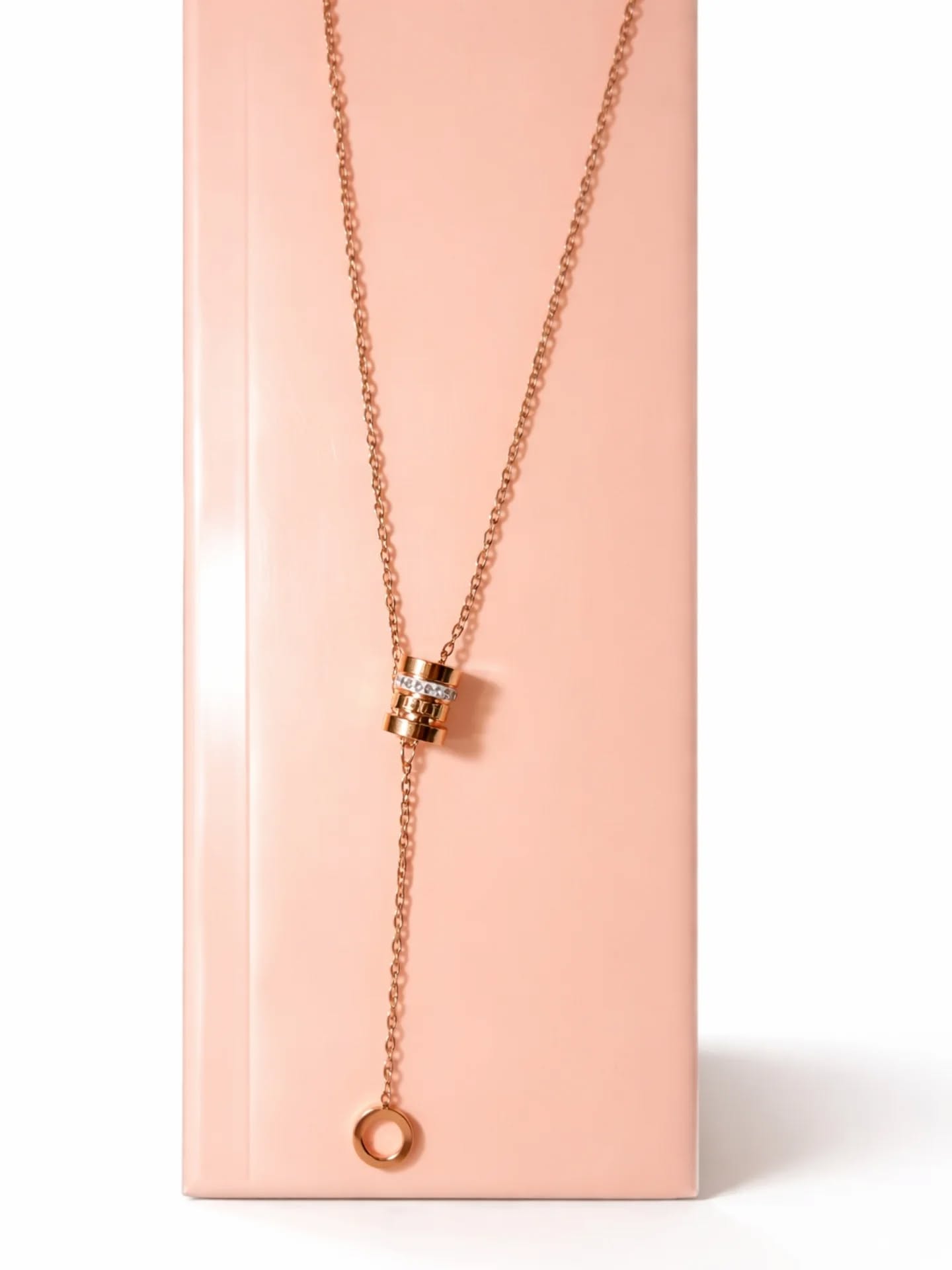 Rose Gold Plated Lariat Necklace with CZ Cylinder Bead