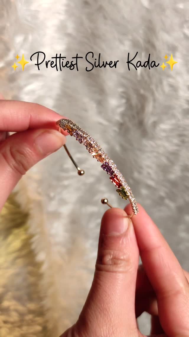 Double Row Multi-Color Stone Silver Bangle