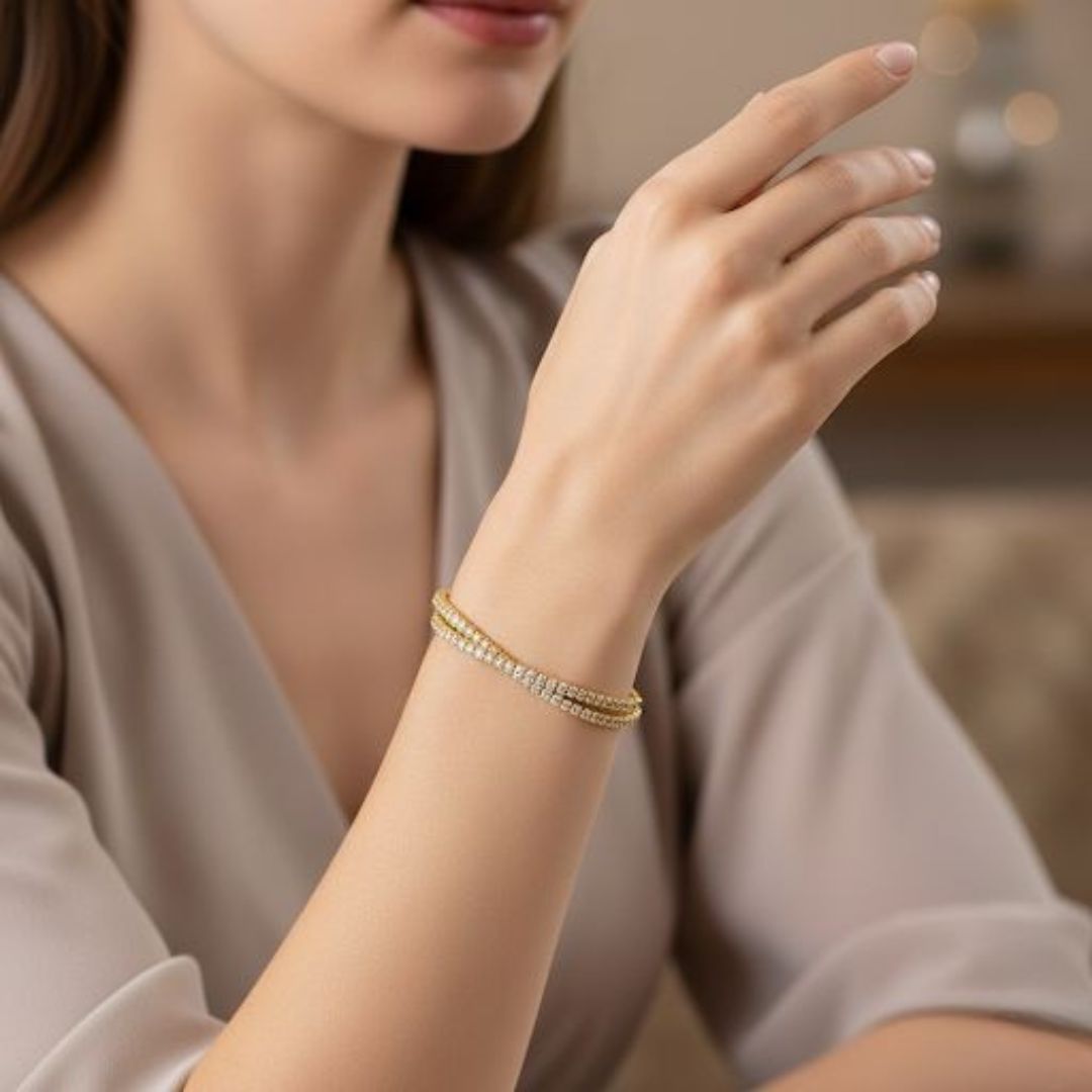 Why Choose This Double Row Tennis Wrap Gold Plated Bangle?