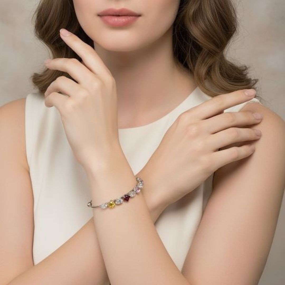 Make a colorful statement with this Women’s Silver Bangle Bracelet. A Multi-Color Stone Cuff Bracelet featuring dazzling Korean Style Square Cut Bangle detail. This Lightweight Adjustable Bangle is Skin Friendly Imitation Jewellery, perfect for stylish, all-day comfort.